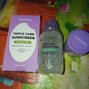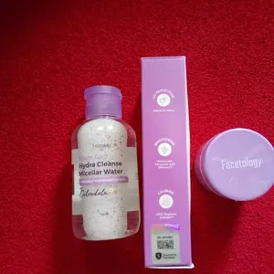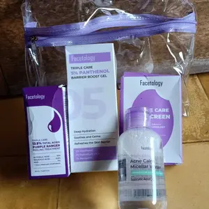 [NEW!] Facetology Hampers Raya Acne Free Set Ramadhan Box 4 Pcs (Sunscreen SPF 30-30ml (ungu), Panthenol Moisturizer 5%, Micellar Water Acne 100ml, Triple Care 13,5% Total Acids Purple Ranger Peeling Serum 20ml)