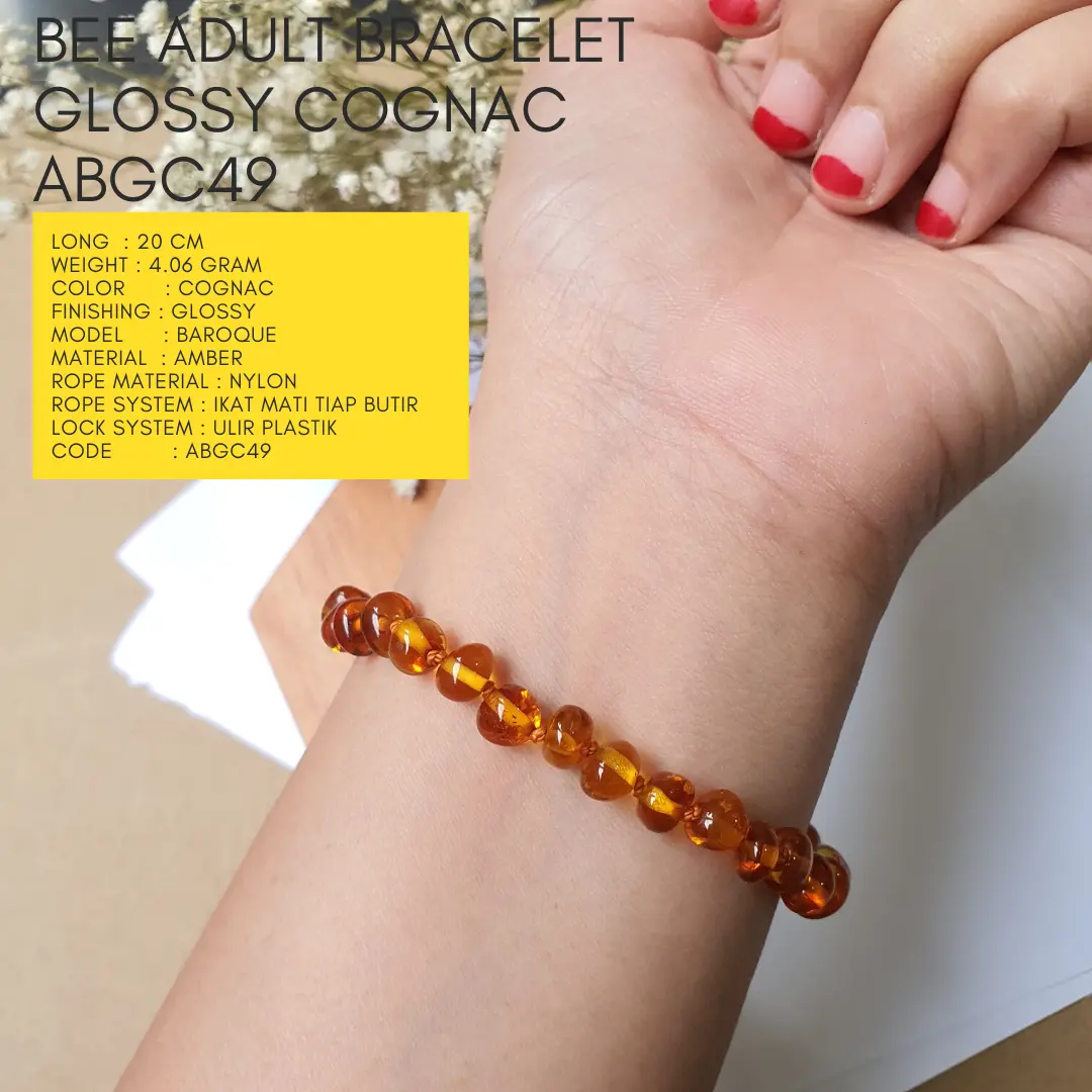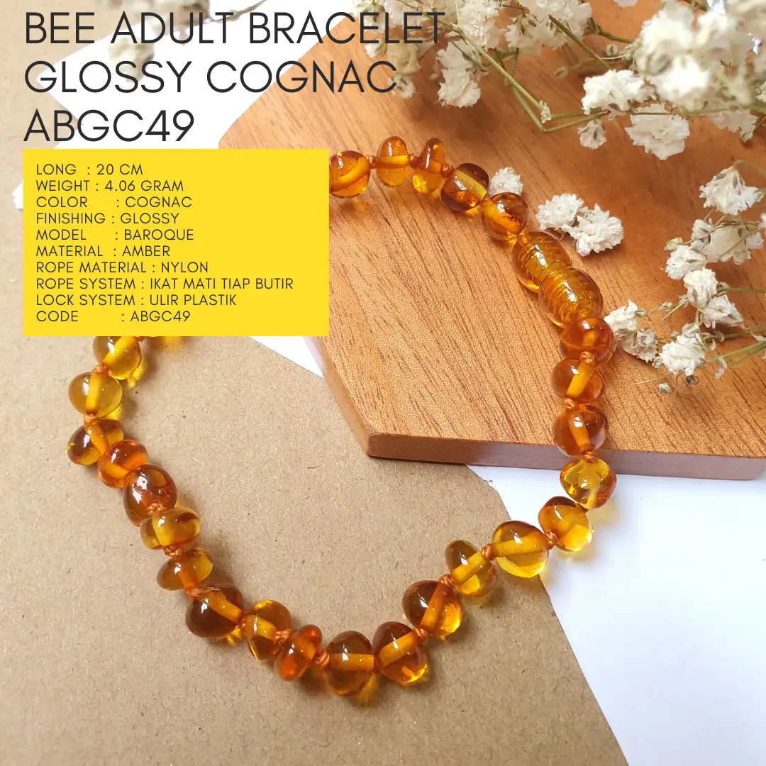Gelang Amber Dewasa Premium Glossy Cognac ABGC49 By Amber Bee