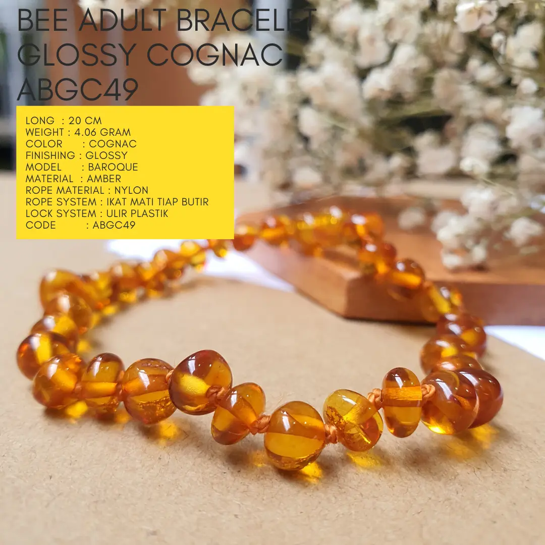5. Gelang Amber Dewasa Premium Glossy Cognac ABGC49 By Amber Bee