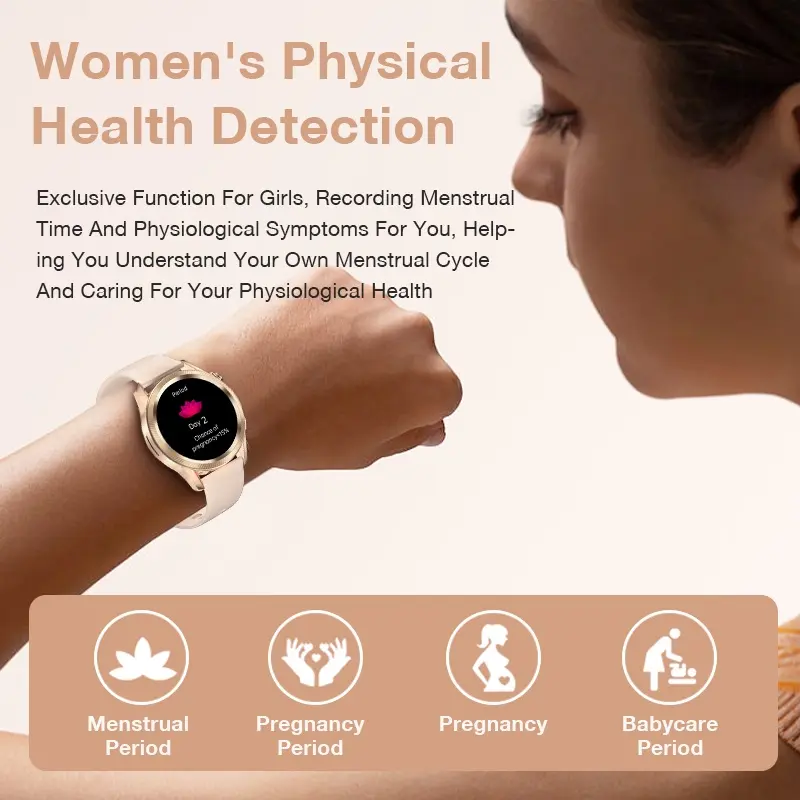 γPemantauan Kesehatan Komprehensifγ: Temukan 13 jenis diagnosis EKG, pelacakan detak jantung 24 jam, pemantauan tidur yang presisi, oksimetri, HRV, Mettle, kesehatan wanita, pemantauan tekanan darah, analisis gula darah, tes stres, latihan pernapasan, dan bahkan pemantauan suhu tubuh. Jam tangan pintar ini adalah pembangkit tenaga listrik kesehatan.