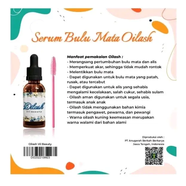 Serum Alis dan Bulu mata/ TERBUKTI MENUMBUHKAN ALIS Merupakan serum berbentuk minyak yang diformulasikan khusus untuk bulu mata dan alis. Diramu dengan metode oil blending sehingga dapat memberi hasil yang maksimal. Manfaat pemakaian Oilash: Merangsang pertumbuhan bulu mata dan alis Memperkuat akar, sehingga tidak mudah rontok Melentikkan bulu mata Dapat digunakan untuk bulu mata yang patah, rusak, atau tercabut Dapat digunakan untuk alis yang sehabis mengalami kecelakaan, salah cukur, sehabis sulam tidak menggunakan tambahan bahan kimia termasuk pengawet, PEWARNA, pewangi. Cara Pakai serum Teteskan serum secukupnya 2-3 tetes pada mascara wand yang telah disediakan Oleskan pada alis seperti memakai pensil alis sambil di gosok perlahan aplikasikan pada bulu mata seperti menggunakan mascara. Jika ada minyak berlebih bersihkan menggunakan tisu atau cotton buds untuk menghindari serum masuk ke dalam mata.
