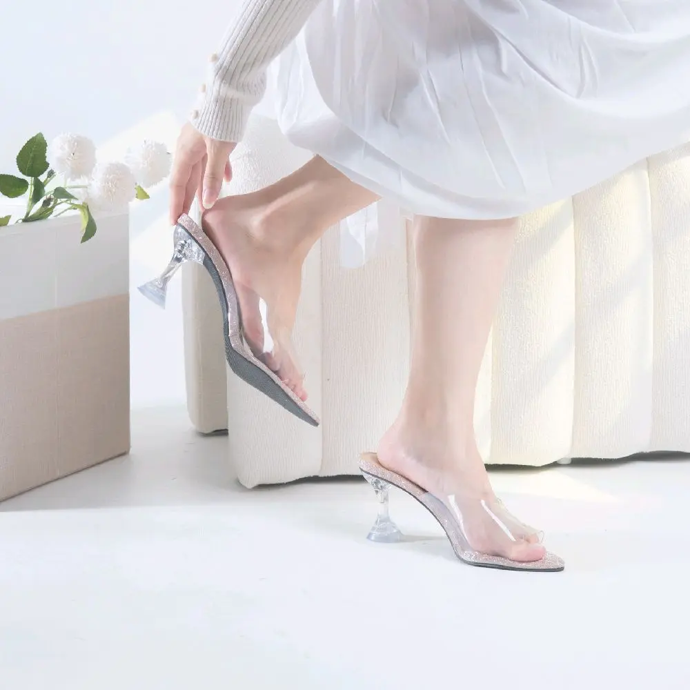 Adeka AZURA Kaca 7 cm Heels Wanita Pesta - Sandal Shoes coquette Bahan Sintetis & Denim Tampilan Stylish Modern Tahan Lama Mudah Dibersihkan