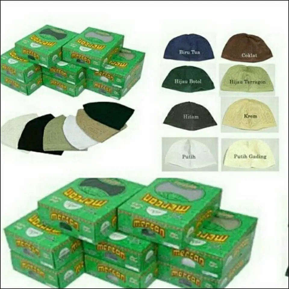 #34; Peci mercon #34; Peci Rajut Soylu Mercan High Quality Made in Turki Asli ya (Import) Ready warna putih,hitam,coklat , cream , hijau army , grey , Tulis pilihan warna di keterangan,jika warna yang dipilih kosong maka akan kami kirim random. 1 karton isi 12 peci (1 lusin). Harga yang tertera merupakan harga 1 biji. Ukuran all size = muat mulai anak usia 5 tahun - Dewasa (melar mengikuti bentuk kepala) Sangat nyaman dipakainya buat Shalat.. *Foto yang kami sajikan asli sesuai Rajut Soylu Mercan High Quality Made in Turki Asli ya (Import) NOTE : Untuk ketersedian warna mohon komfirmasi dulu sebelum melakukan transaksi