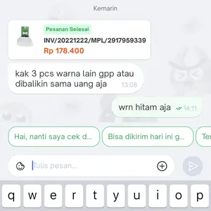 3 barang di bilang putih habis, di info warna lain. Ok gpp minta warna hitam, eh dikirim ijo. Mohon maaf nih kasih bintang 2, peci putih nya kotor dan udah berubah warna kuning.