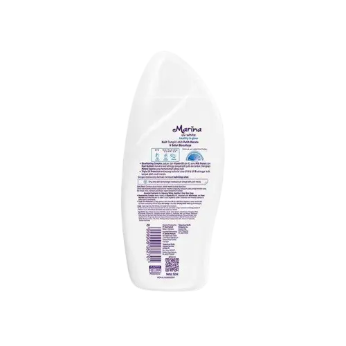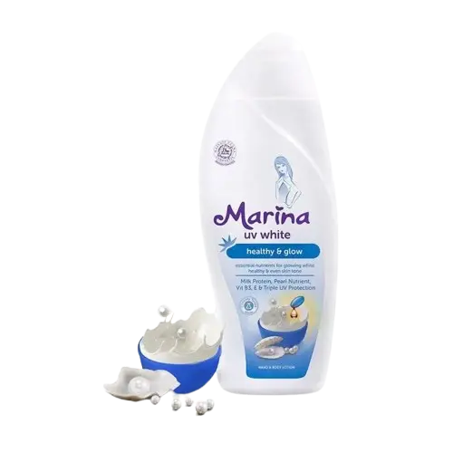Handbody Lotion Marina UV White adalah lotion tubuh yang memberikan perlindungan terhadap sinar UV yang merusak kulit. Diformulasikan khusus dengan Vitamin E dan bebas alkohol, lotion ini membantu menjaga kulit agar tetap lembut dan lembab sepanjang hari. Key Features: - Perlindungan terhadap sinar UV - Mengandung Vitamin E - Bebas alkohol - Menjaga kulit tetap leamanan produk ini. Handbody Lotion Marina UV White hadir dalam kpan selama 12 bulan. Produk ini diproduksi di Indonesia, edisi reguler, serta tidak mengandung alkohol atau aerosol sehingga aman digunakan untuk setiap jenis kulit. Untuk hasil optimal, gunakan Handbody Lotion Marina UV White setiap hari setelah mandi atau saat dibutuhkan. Dapatkan manfaat kulit yang lebih halus dan sehat dengan Handbody Lotion Marina UV White!