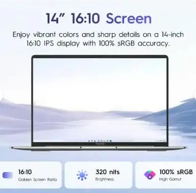 TTECNO MEGABOOK T14 Air i5 1334U 16 + 512 GB Intel Iris Xe Graphics eligible Ultra-light high-strength aluminum alloy material design under 999g. 16:10 Gold Display Ratio 1920*1200 100% sRGB Large-size 2*3813 speakers with DTS X Ultra sound effects Pre-installed some AI software's AI PC: including the AI PPT,AI Gallery, AI Meeting Assistant .etc. (Optiional) Supports OneLeap for seamless device integration with Tecno PC Manager Fast Charging: 65W GaN charger included. Strong system thermal design TDP 30W Ultra-Sleek & Light 14-Inch & 999g* Intel Core i5-1334U Processor 10 Cores, 12 Threads, 4.6GHz 16:10 Golden Screen Ratio With 100% sRGB Accuracy 65W GaN PD Fast Charging Up to 12 Hours of Usage