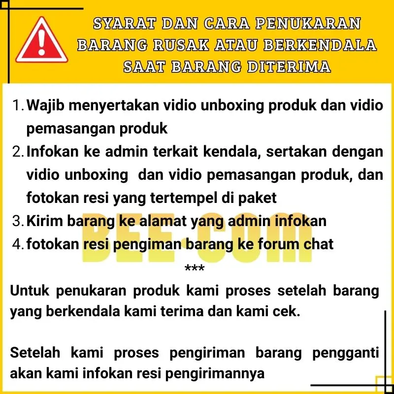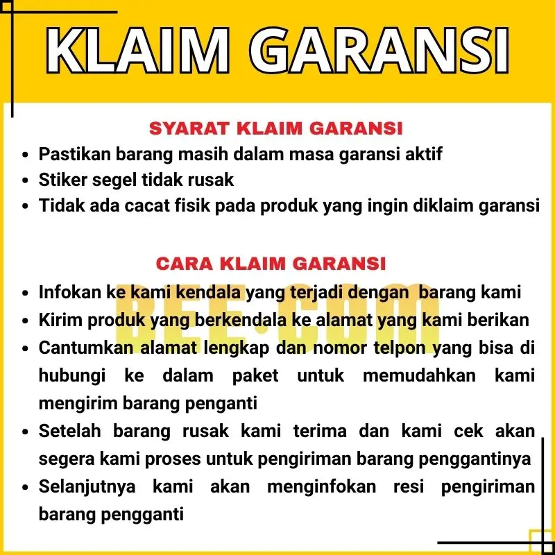 JIKA TERJADI MASALAH PADA PRODUK DAPAT DIKLAIM DENGAN GARANSI.