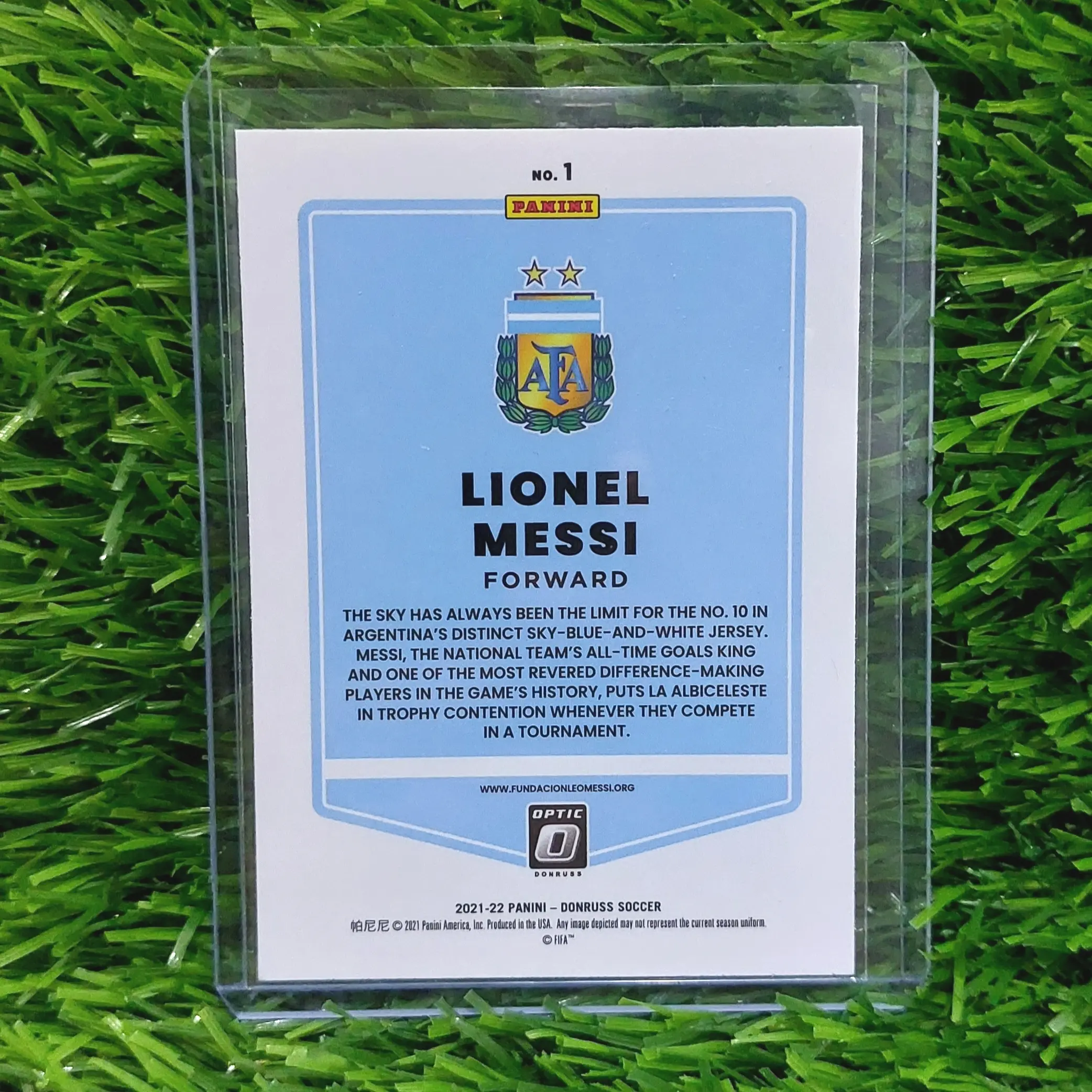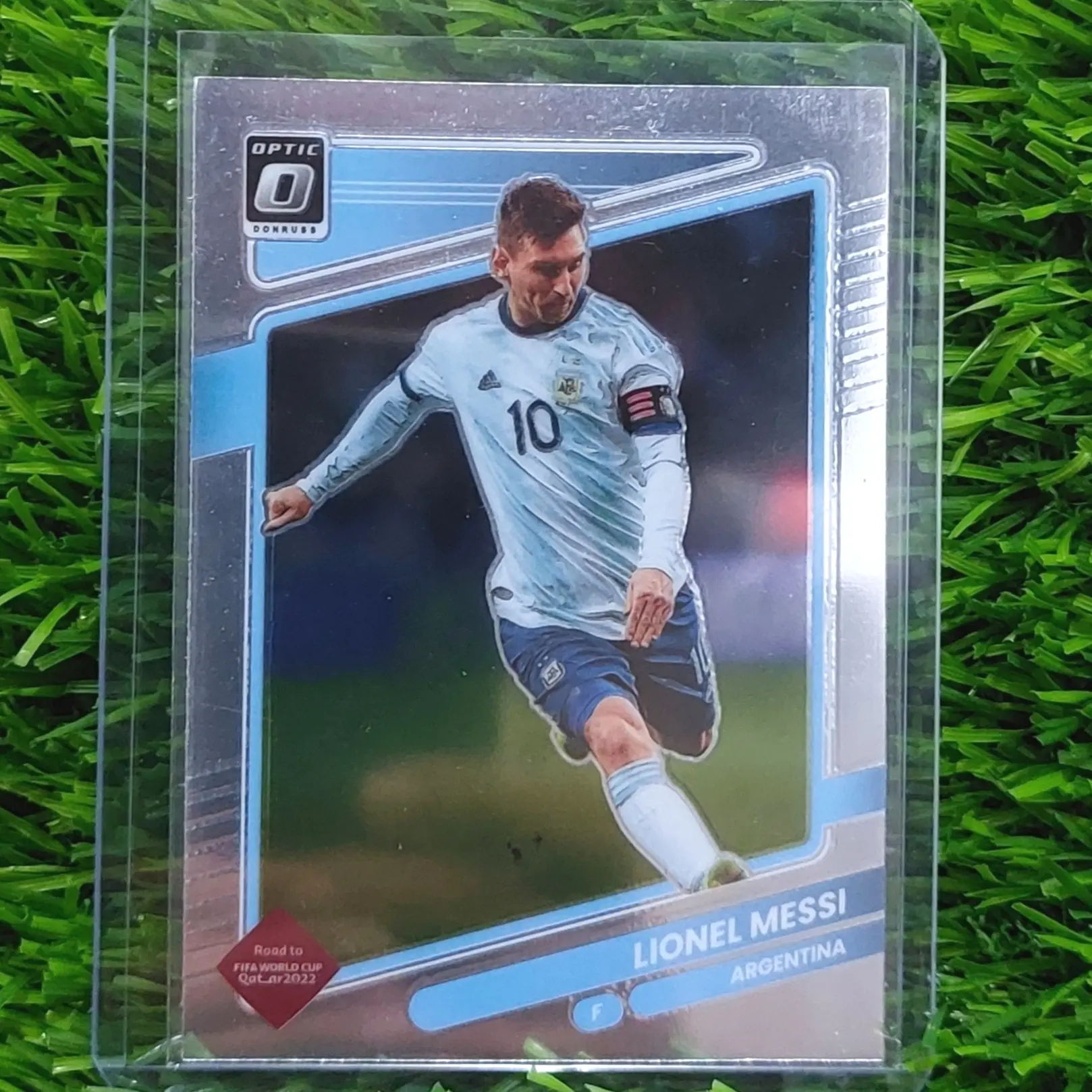 Kartu bola Lionel Messi Argentina 2021-22 Panini Optic World Cup Qatar 2022 #1 adalah kartu bola yang menampilkan Lionel Messi dari tim Argentina, berasal dari musim 2021-2022, dan merupakan bagian dari seri Panini Optic World Cup Qatar 2022. 🏆⚽