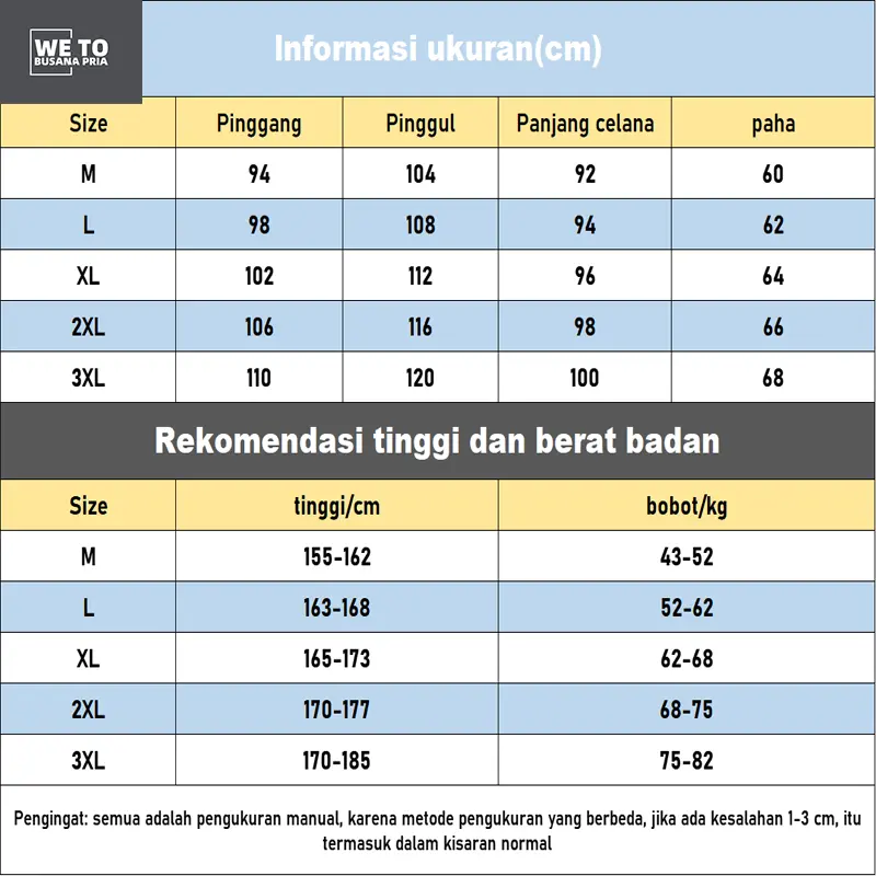 Karena metode pengukuran yang berbeda, mungkin ada kesalahan 1-3 cm