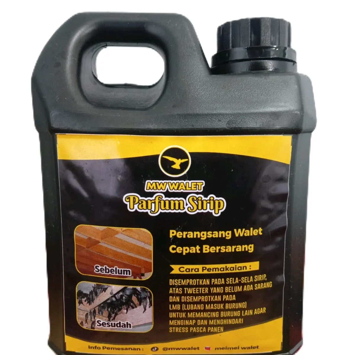 Parfum sirip MW Walet adalah parfum yang memiliki aroma khusus untuk membuat walet nyaman dan merangsang walet untuk cepat bersarang , menetralisir bau wangi wangian tubuh ketika masuk gedung , dan aroma pekat fermentasi dari sarang walet tanpa ada alkohol ini disemprotkan di sela sela sirip dan pinggiran LMB gedung walet untuk menghindari dan mencegah walet stress pasca panen.