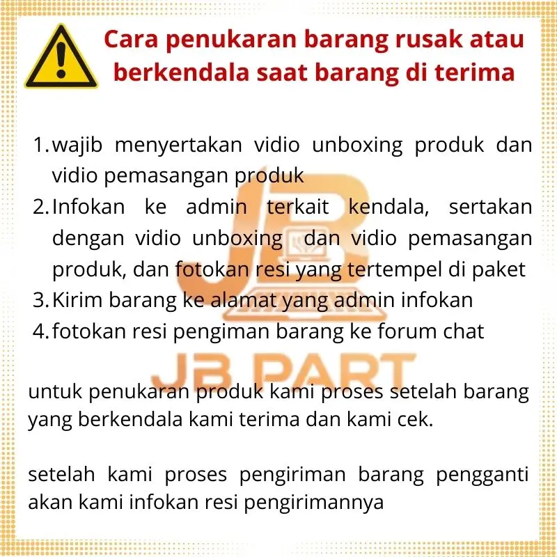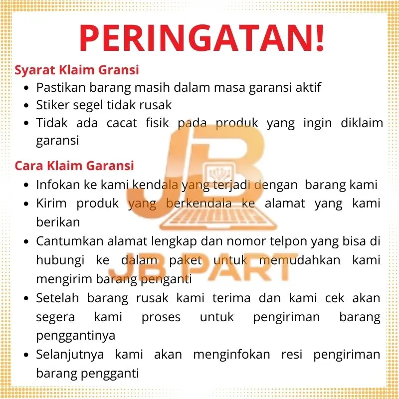 NOTE : JIKA TERJADI MASALAH PADA PRODUK DAPAT DIKLAIM DENGAN GARANSI. SERTAKAN VIDEO UNBOXING ( DARI AWAL BUKA PACKING ) AGAR KLAIMAN DIPROSES.
