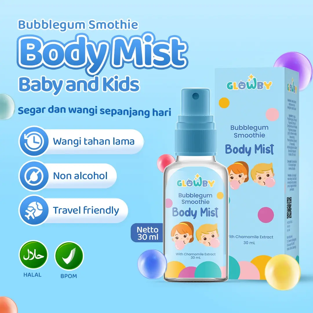(Glowby) Body Mist Smoothie Bubble Gum untuk Bayi dan Anak 30 ml