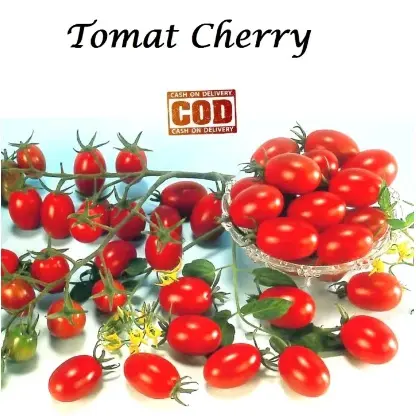 TOMAT CHERRY MERAH ISI 12 BIJI Penyemaian Benih Tomat Cherry merah Siapkan wadah penyemaian (berupa nampan, tray, kaleng bekas, dsb). Bagian bawahnya harus diberi lubang secukupnya untuk sirkulasi air. Sehari sebelum semai, isi dengan media semai hingga 3/4 nya. Komposisi media semai = tanah : pasir/sekam : kompos = 1 : 1 : 1. Taburkan biji Tomat Cherry merah secara merata di media semai. Tutup benih dengan media tanam tipis-tipis. Semprotkan air yang halus (gunakan spray). Tutup wadah semai dengan plastik bening yang diberi 3 - 6 lubang. Letakkan di tempat yang terkena sinar matahari langsung. Jika media kering, buka plastiknya, semprotkan air halus, tutup kembali. Ketika benih mulai berkecambah, buka tutup plastiknya. Jaga medianya agar tidak kering dan tidak terlalu basah. Semprotkan air halus 1-2 kali sehari bila medianya kering. Benih mulai bertunas dalam waktu 5 hari. Persemaian diakhiri setelah memiliki 3 - 5 helai daun. Penanaman Bibit Tomat Cherry merah Siapkan wadah/tempat menanam (polybag, pot, kaleng bekas, dsb) Polibag/pot harus diberi lubang di bagian bawahnya. Masukkan batu-batu kecil agar lubang tidak tersumbat tanah. Sehari sebelum tanam, isi polibag/pot dengan media tanam hingga 3/4 nya. Komposisi media tanam = tanah : pasir/sekam : kompos = 2 : 1 : 1. Setelah bibit Tomat Cherry kuning memiliki 3 - 5 helai daun, pindahkan ke polibag/pot. Caranya: Buat lubang terlebih dulu di polibag/pot. Ambil bibit beserta tanah di sekitar akarnya. Masukkan ke lubang dengan posisi tegak, tambahkan tanah di sekitarnya. Letakkan polibag/pot di tempat terang namun aman dari hujan. Setelah tumbuh daun baru, letakkan polibag/pot di tempat terbuka. Lakukan perawatan terhadap tanaman Tomat Cherry MERAH
