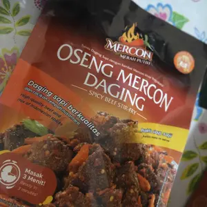 Yang cocok di aku cuma oseng dagingnya aja, itu betul2 enak dan pedasnya nampol. Kalo yg untuk varian lain agak kurang rasa. Kayaknya bakalan beli lagi yang varian daging merconnya