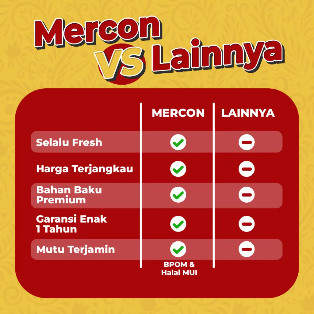 Mercon merah putih sudah sampai dikirim tanpa ada kerusakan dan sesuai dengan yang dipesan,semoga cocok dilidah dan praktis buat sahur tinggal dipanaskan tidak ribet