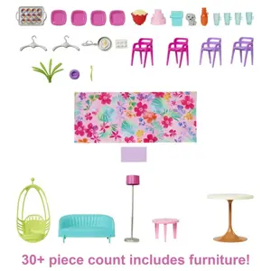 - ​Rumah 2 lantai ini memiliki kamar tidur, kamar mandi, dapur, ruang makan, ruang tamu, dan lemari dengan sentuhan modern dan gaya khas Barbie. Mainkan cerita apa pun dengan fitur menyenangkan, seperti kursi ayun yang berfungsi sebagai elevator dan transformasi yang mengungkap lebih banyak peluang bercerita. Lipat tempat tidur susun untuk menginspirasi menginap, dan angkat dan turunkan dinding ruang tamu untuk mengalihkan cerita dari malam film ke pesta ulang tahun!