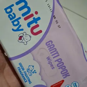 - Tissue basah dengan formula Odor Fighting Fragrance untuk lawan bau pup & pesing