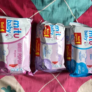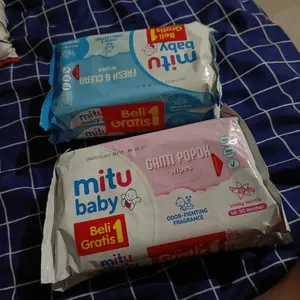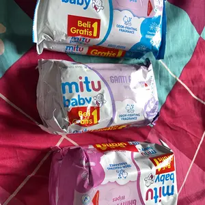 Alhamdulillah..... Paketan tisu basah paket 6 pcs /3 pack MITU BABY WIPES 50s tisu basah bayi mix nya sudah nyampe dirumah juga.....