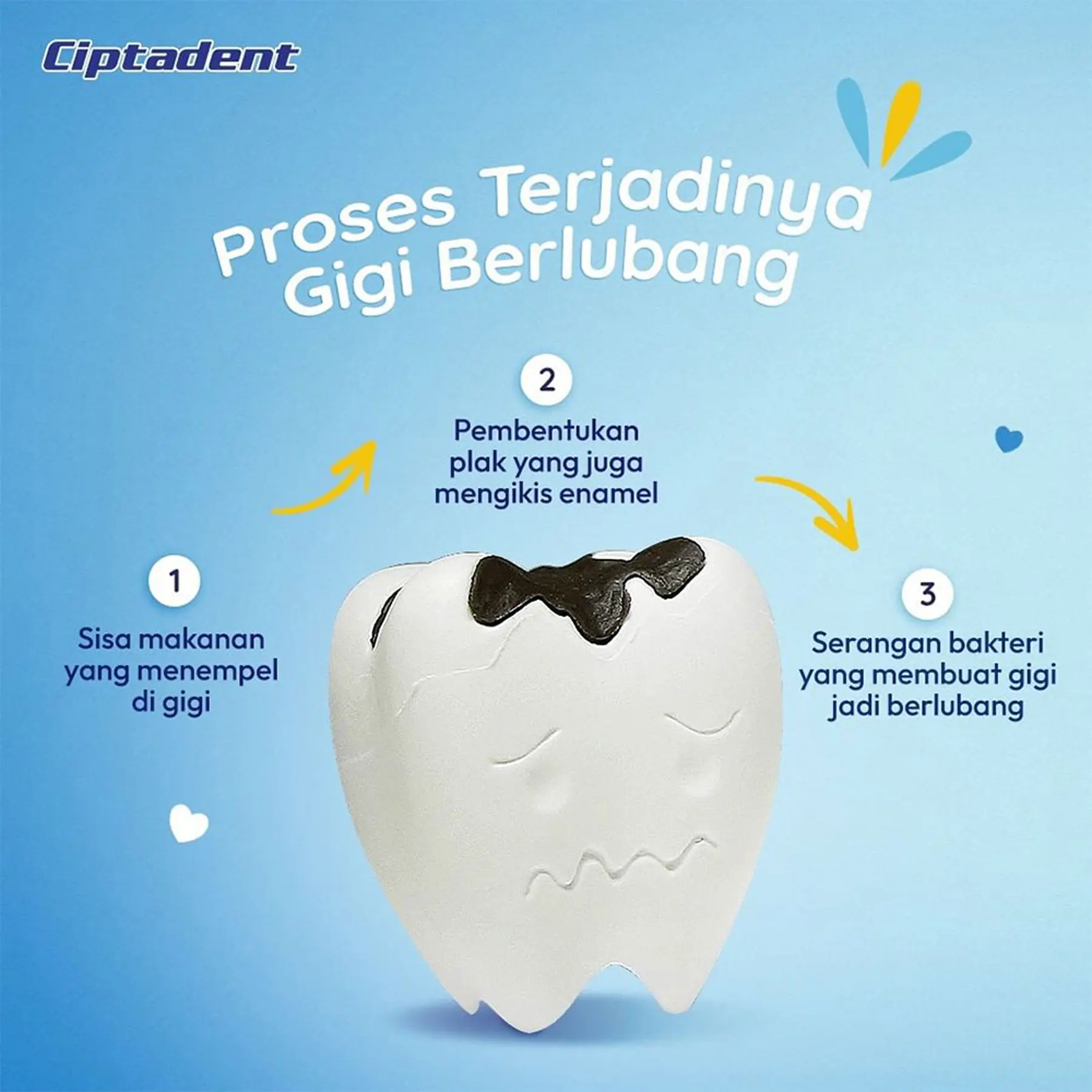 Β·Gunakan pasta gigi Ciptadent Maxi 12 Cool Mint minimal 2 kali dalam 1 hari setelah makan.