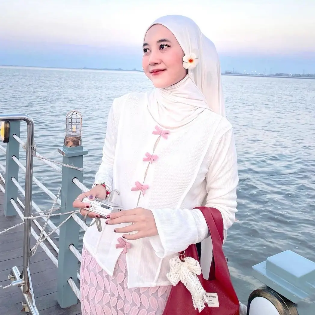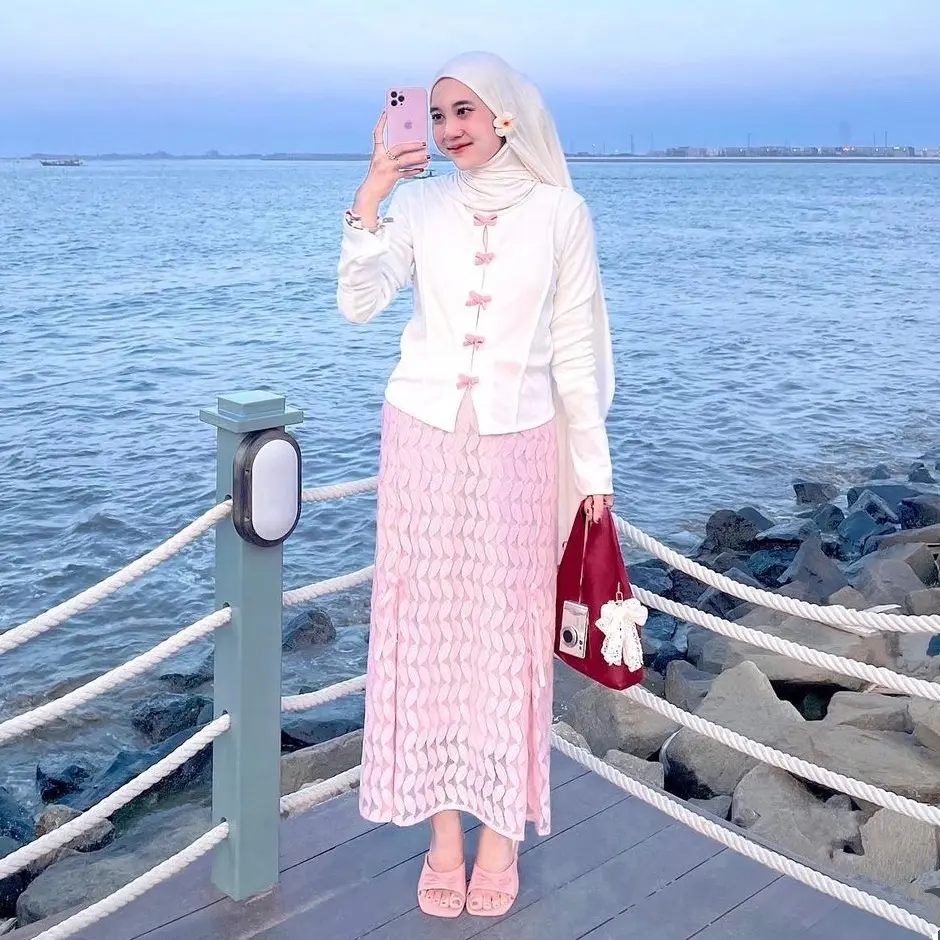 - Padukan dengan rok rempel putih atau plisket warna senada untuk tampilan girly