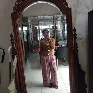 - Kancing: Pita hias (non-fungsi), blouse disambung penuh