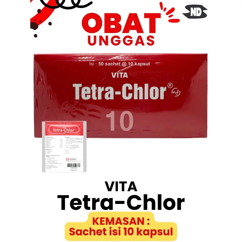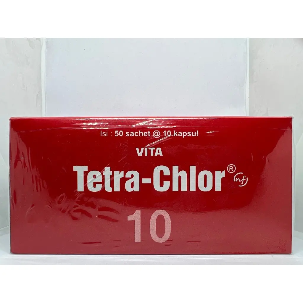 VITA Tetra-Chlor NF adalah sediaan kapsul mengandung antibiotik berspektrum luas dan bekerja dengan cara mengikat ribosom 30S dan 50S sehingga sintesis protein bakteri terhambat.