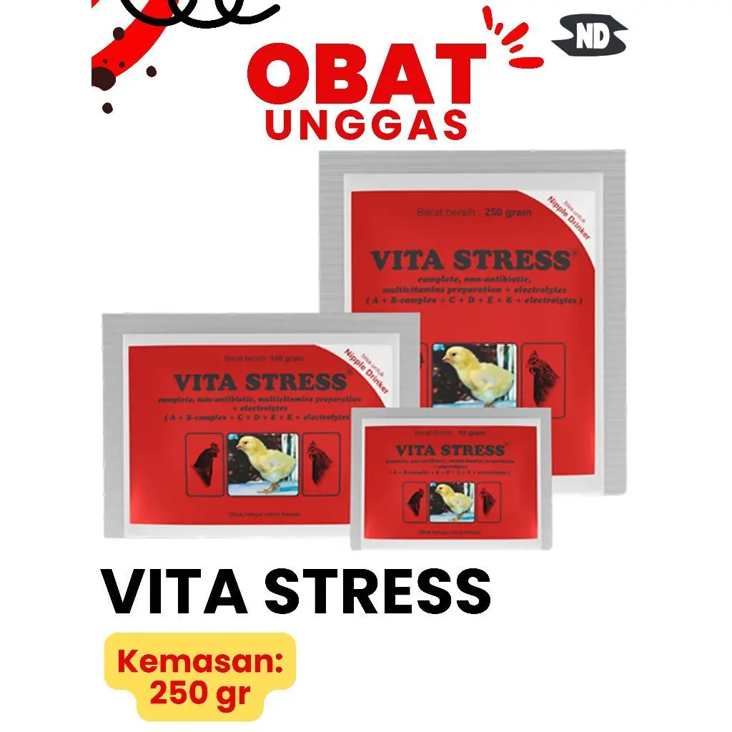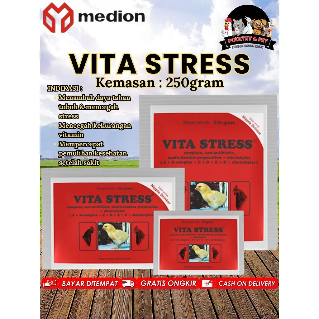 Obat Ayam, Bebek, Itik, Burung, Unggas VITA STRESS 250gr MEDION / Sachet