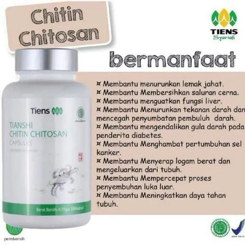 Produk Chitin Chitosan terbuat dari serat makan hewani dimana merupakan zat penting selain protein, lemak, mineral, karbohidrat dan vitamin sebagai serat makanan. POM: SL112300721