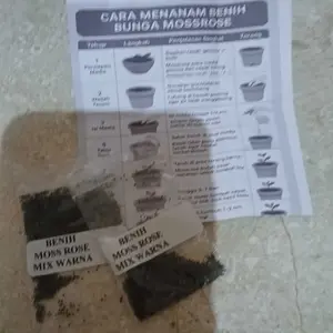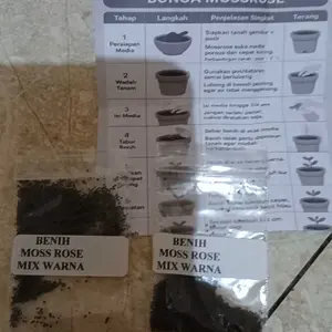 Benih moss rose isi 100 biji adalah produk yang dijual dengan berbagai pilihan warna bunga yang tersedia seperti merah, ungu, kuning, putih, dan pink. Dalam kemasan benih moss rose sudah disertakan cara penanamannya sehingga memudahkan pembeli dalam menanam benih tersebut.