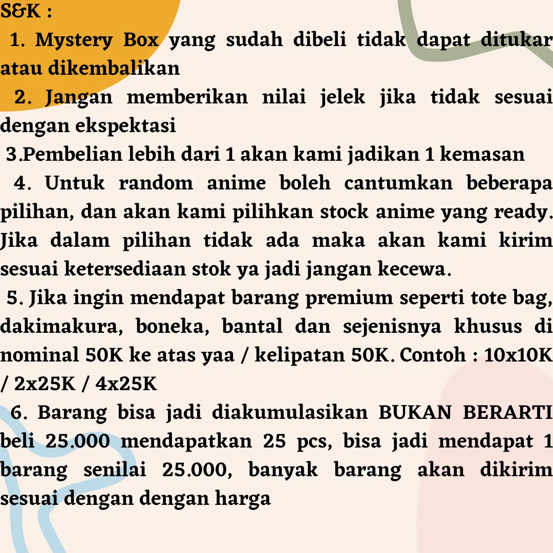 Mantap banget toko disini , hadiahnya mantap wkwk dapat dakimura dan lain lain