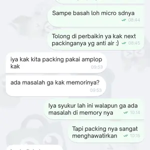 Seller ramah dan responsif. Pesan hari ini, besok sampai. Kurir nya yang agak lama, dari proses terima barang untuk dikirim, butuh waktu beberapa jam untuk sampai di tujuan. Barang asli, dari kemasan nya karena ada hologram Datascript. Sayang, nggak ada bubble wrap nya, untung nggak penyok atau jatuh dan keinjek. Semoga awet dan sesuai speed nya. Thanks Seller dan Toped
