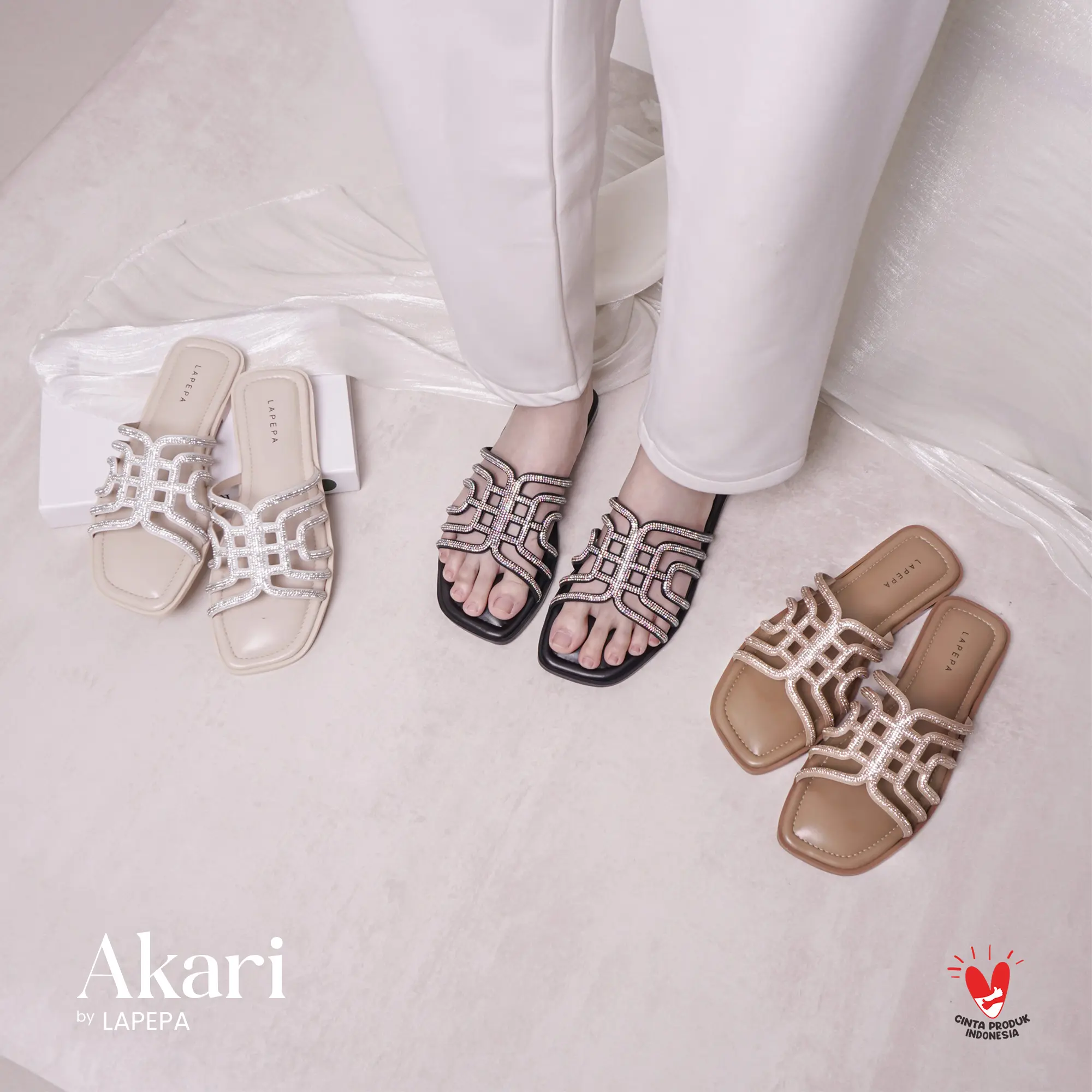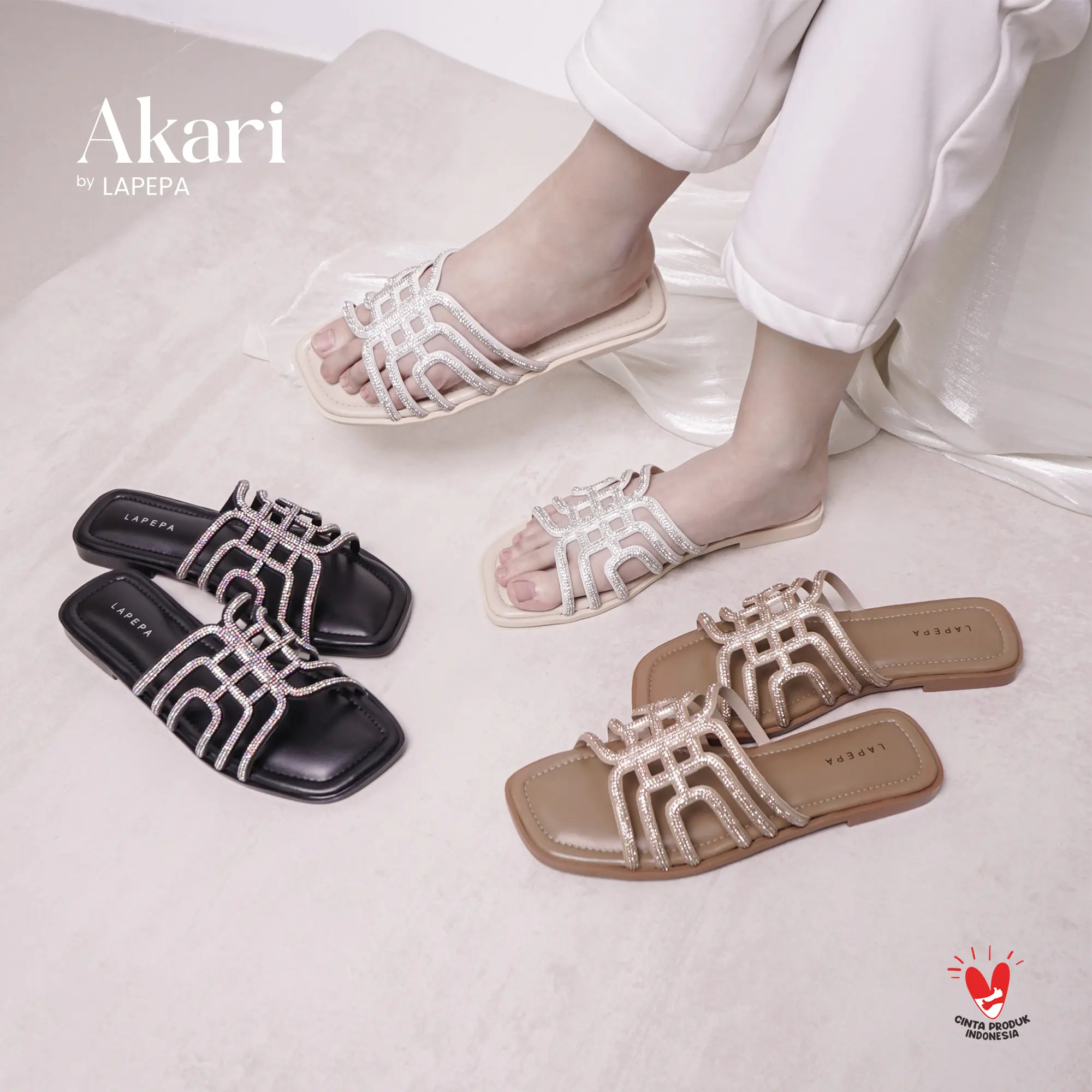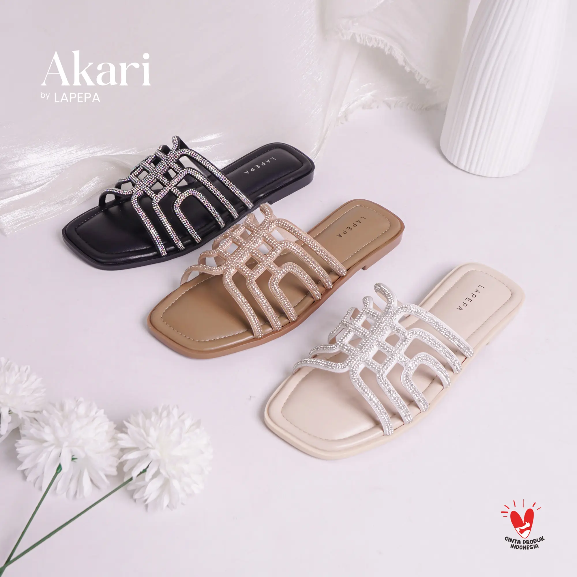 Alas kaki khusus wanita dengan merk LAPEPA tipe AKARI, sangat cocok untuk menemani aktivitas kalian agar terlihat feminim dan elegan, dibuat dengan bahanyang premium.