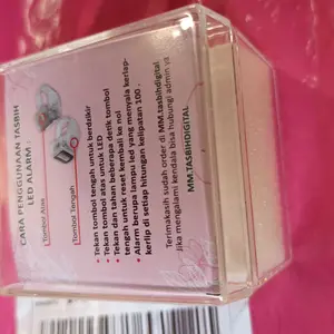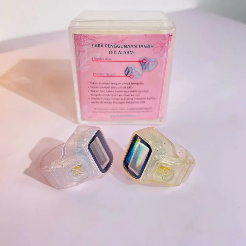 Tasbih Digital LED Mini Alarm adalah tasbih yang didesain transparan dengan ukuran mini. Tasbih ini dilengkapi dengan alarm lampu LED yang akan menyala saat berzikir mencapai 100 dan kelipatannya, serta saat mereset angka dzikir kembali ke 0.