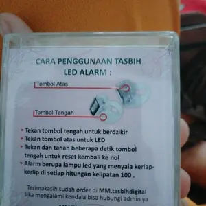 alhamdulillah barang nya sdh dtg dengan selamat, kirain alarm nya bunyi ternyata cm nyala lampu kedap kedip doang, tp gpp, tasbih nya berfungsi dgn baik, trimakasih ka..