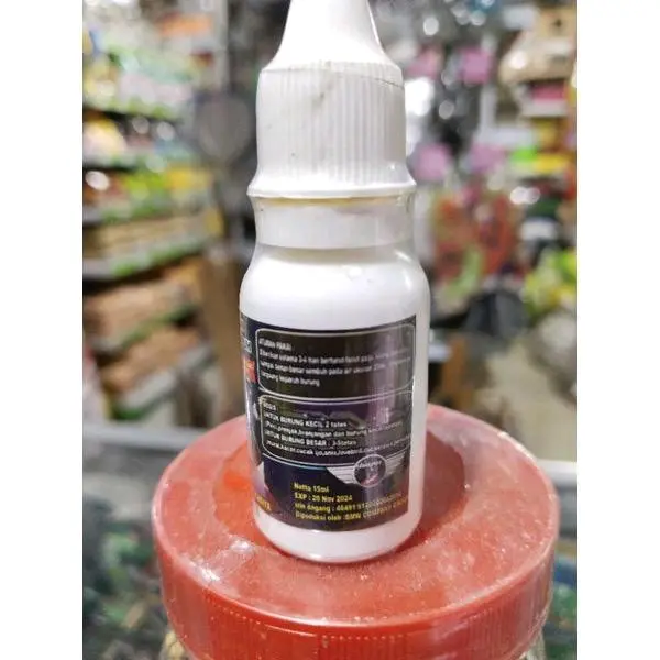 berikan selama 3 sampai 4 hari berturut-turut Pagi siang dan sore sampai benar-benar sembuh pada air ukuran 20 ML/diteteskan langsung ke paruh burung dosis