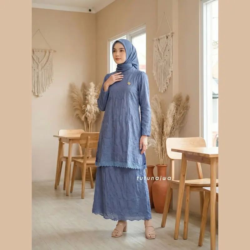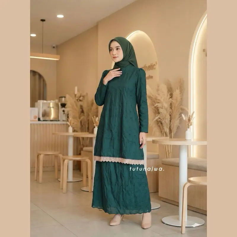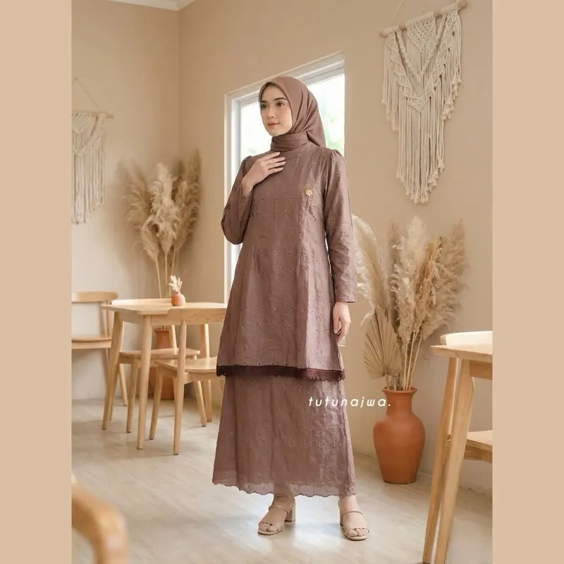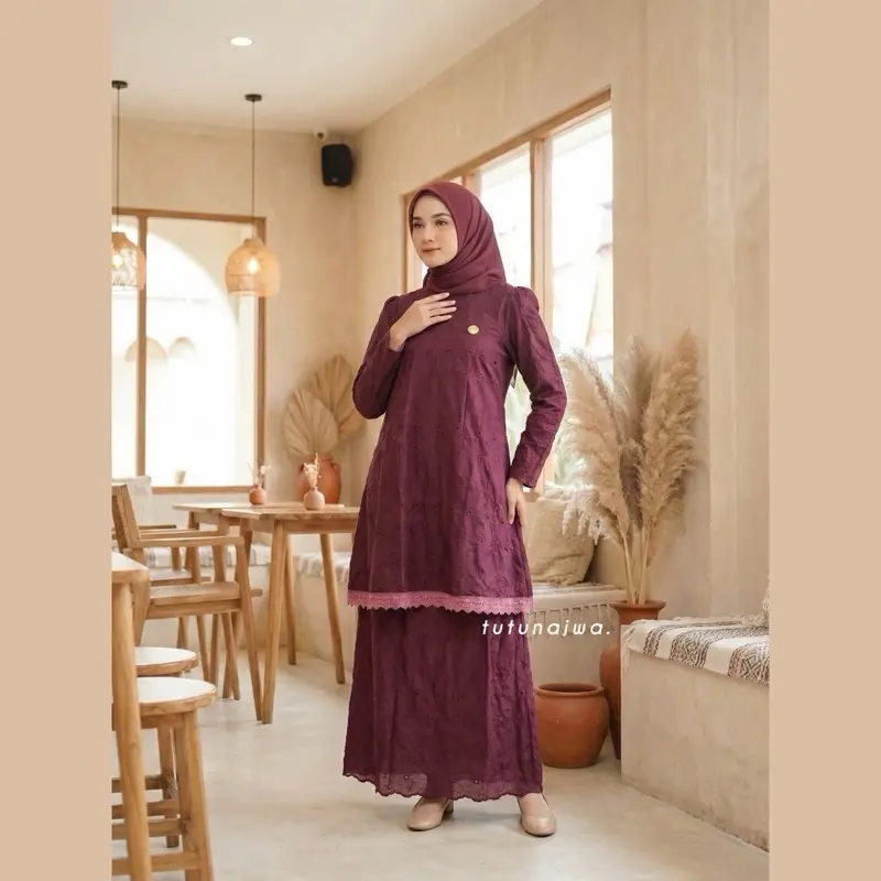 (PREORDER) TUTUNAJWA Filcia Series Setelan Rok Kurung Melayu Katun Bordir Mix Renda ( Tanpa Hijab )