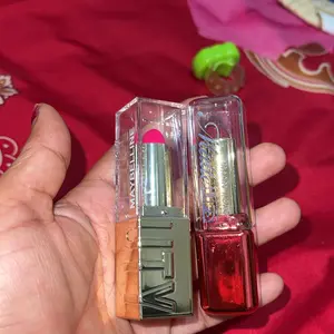 sedangkan (per 3 pcs ) lipglos Mila mini lipoil dan lipstik peach nude,beli 1 dapat dua, jadi dua paket itu belum saya terima,,