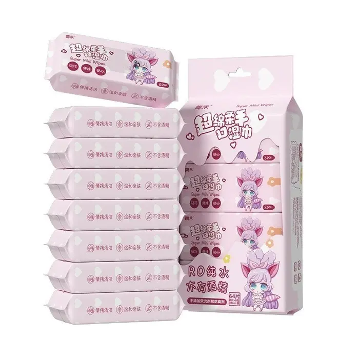 - Tisu basah mini dikemas dalam kemasan yang mudah dibuka dan praktis
