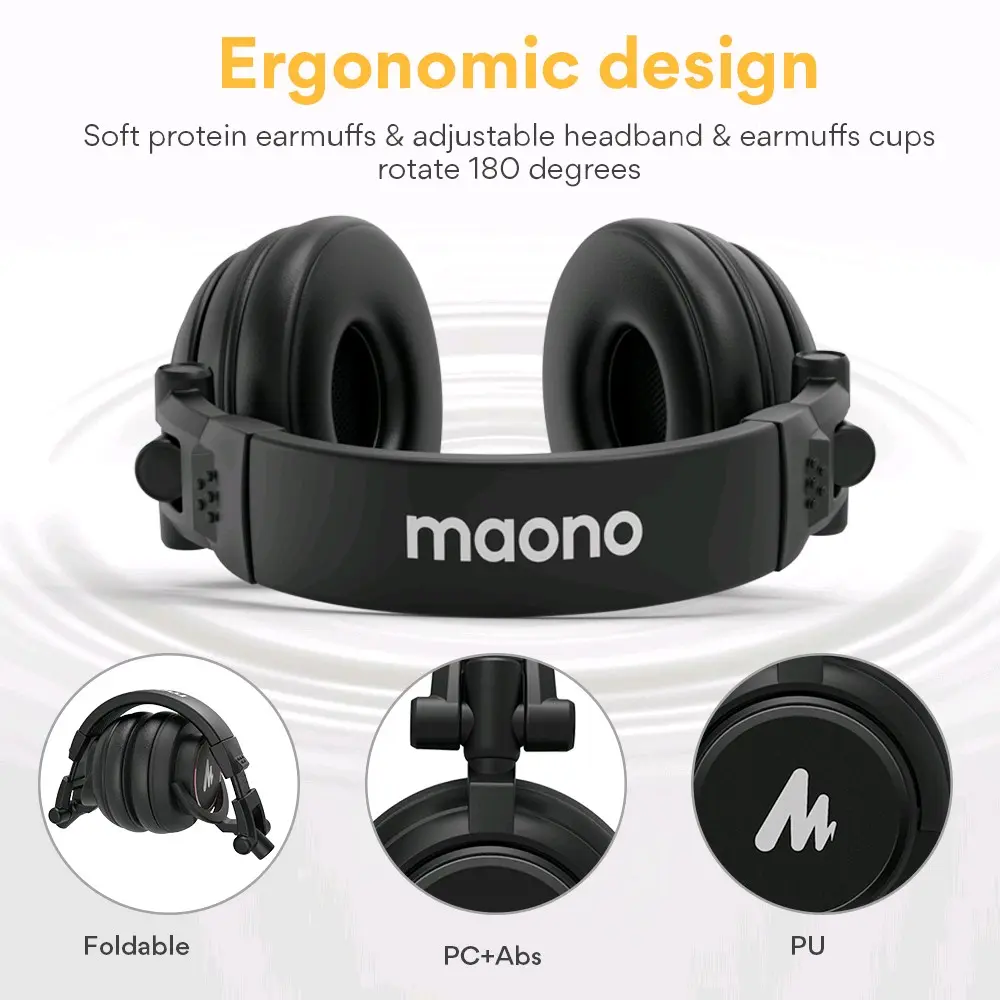Headphone Maono dilengkapi dengan kabel berukuran 3 m yang memiliki plug 3,5 mm dan dua adaptor 6,3 mm tambahan. Hal ini memungkinkan pengguna untuk menghubungkan headphone dengan berbagai perangkat yang memiliki port audio yang berbeda. Penutup telinga headphone Maono terbuat dari busa yang lembut dan kuat, serta ekstra besar dan tebal sehingga dapat memberikan kenyamanan saat digunakan dalam waktu yang lama.