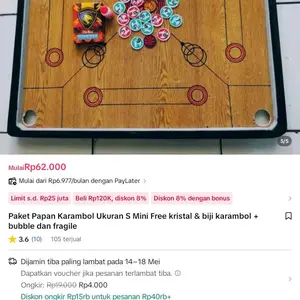 5. Paket Papan Karambol Ukuran S Mini Free kristal & biji karambol + bubble dan fragile