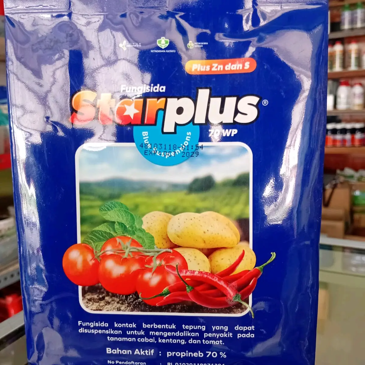 Star plus adalah fungisida kontak yang sangat efektif untuk mengendalikan penyakit pada berbagai jenis tanaman. Fungisida ini berbahan aktif propineb 70% plus Zinc dan sulfur yang dapat membunuh jamur dan bakteri pada tanaman. Propineb 70% plus Zinc dan sulfur dapat mengendalikan penyakit phytoptora, empuk tepung, bercak daun, busuk daun, batang, dan buah pada berbagai jenis tanaman.