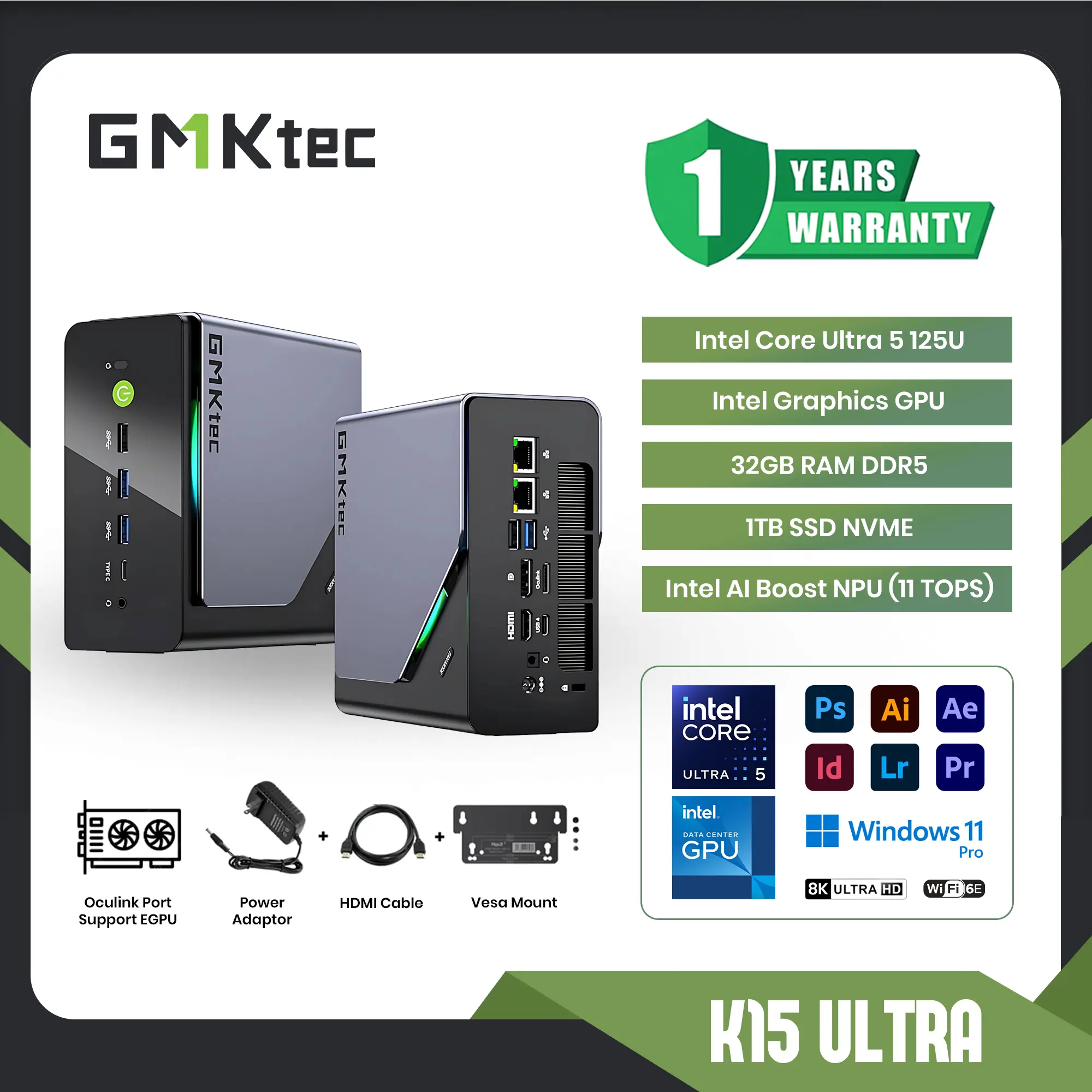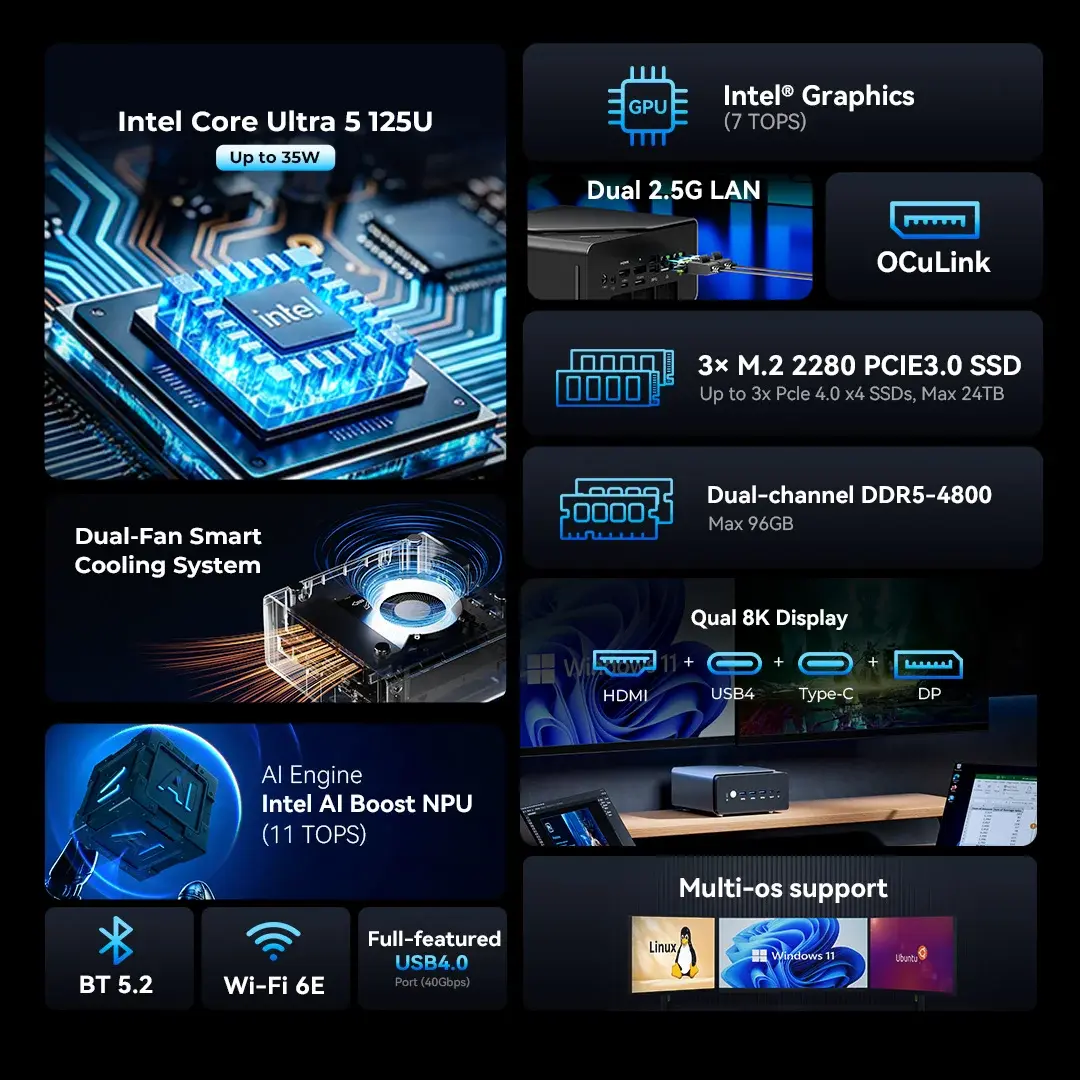 MINI PC Intel Core Ultra 5 125U GMKTEC K15 ULTRA 32GB RAM DDR5 1TB SSD NVME - Win 11 pro Original
