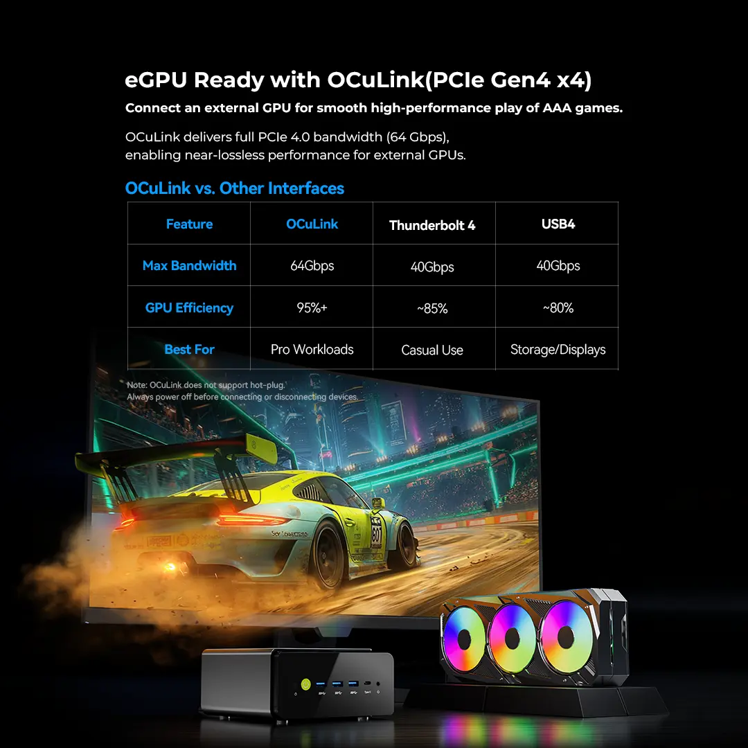 1×Oculink (PCIe Gen4 ×4, no hot-swap)