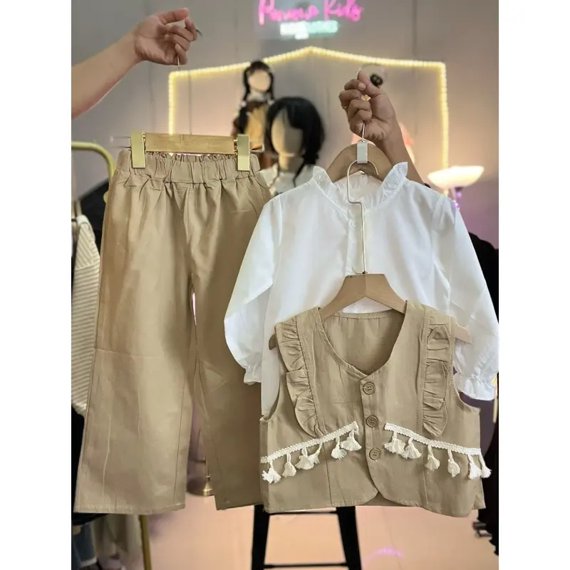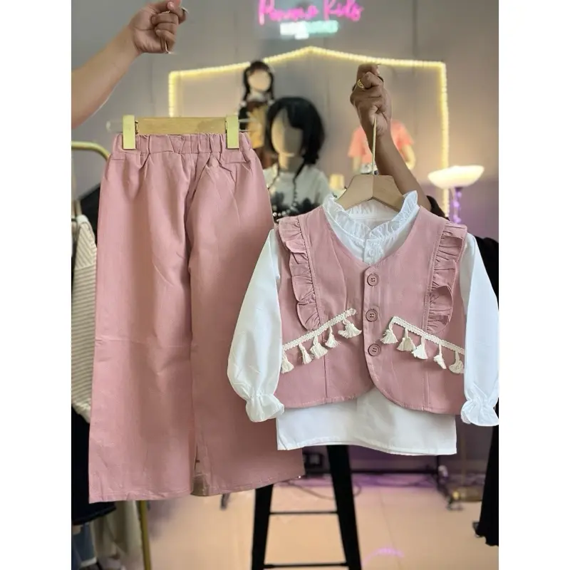 3-8thn Setelan 3in1 Celana Button 3 Baju Anak Perempuan Cantik Terbaru