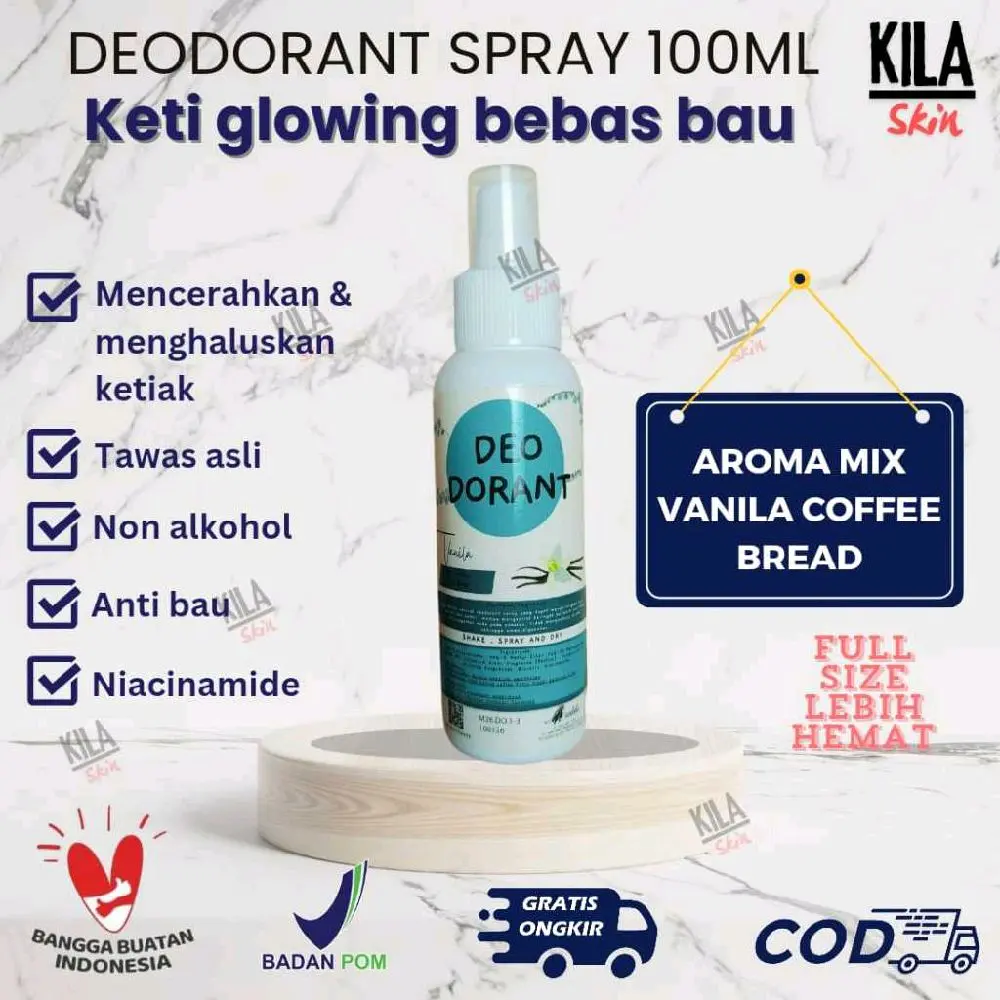 5. (BPOM)(COD) PROMO 1 BOTOL 100ML Deodoran Tawas - Aroma VANILA Non Parfum dan Non Alcohol untuk Pria dan Wanita, Tubuh, Tosca, Bau