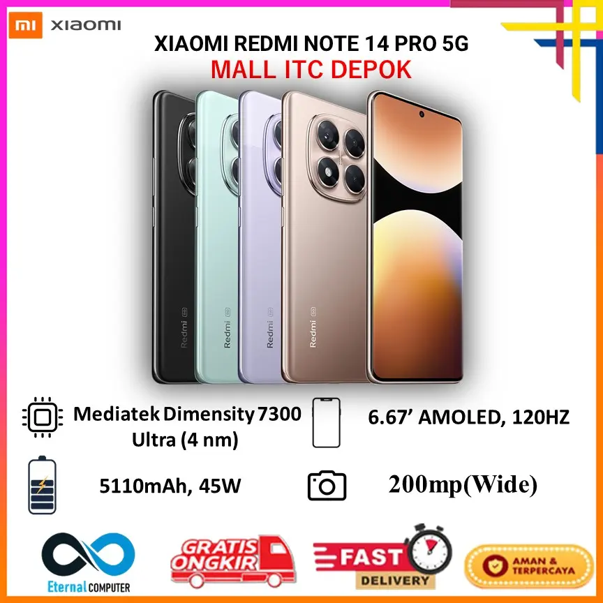 • XIAOMI REDMI NOTE 14 PRO 5G 8GB 256GB GARANSI RESMI XIAOMI INDONESIA