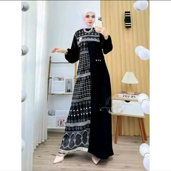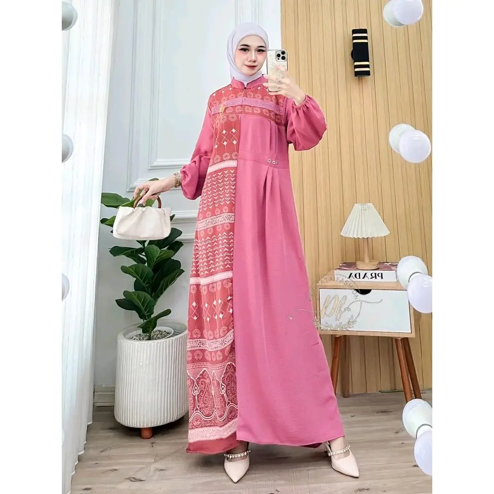 5. READY STOK - Gamis Tsabina Mute Swarovsky - Crinkle Motif Kombinasi Polos Wanita - Gamis Lebaran 2025