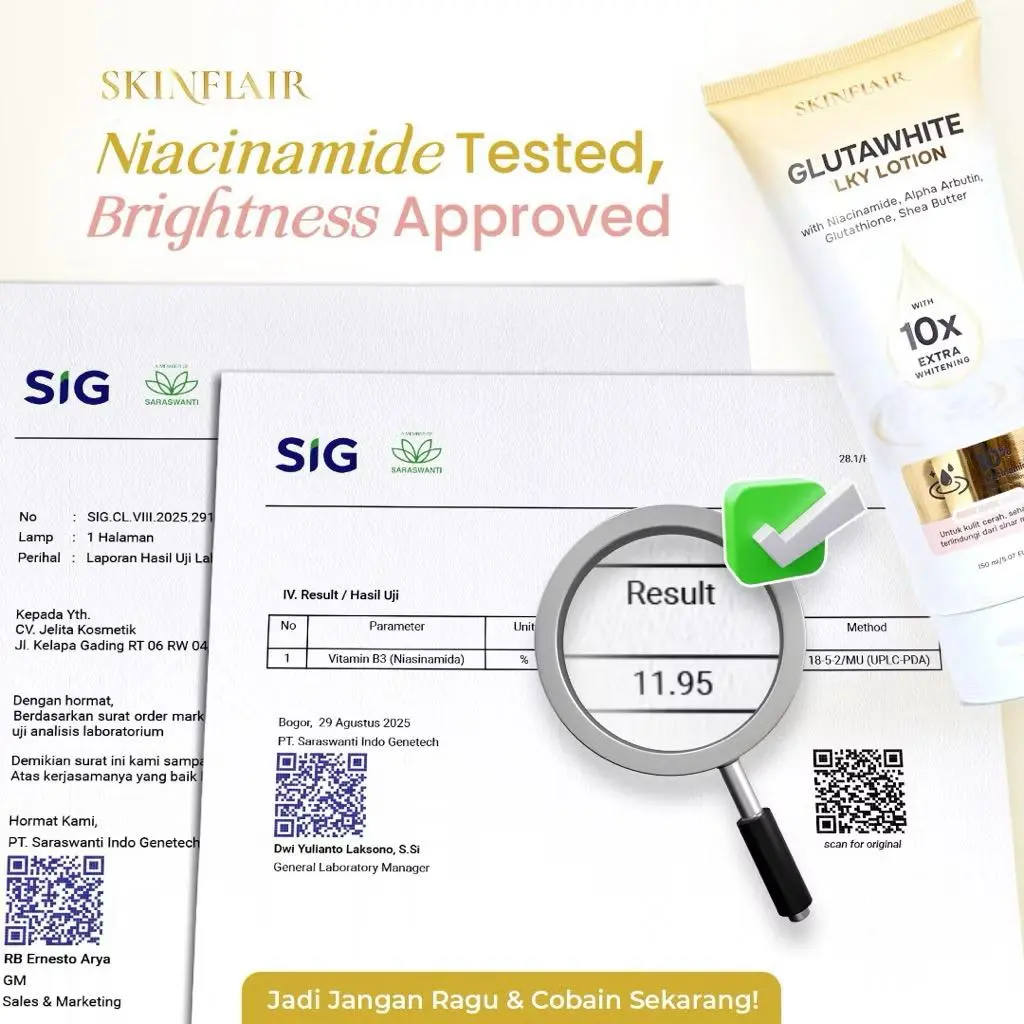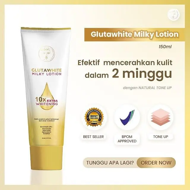 Lotion pencerah pertama di Indonesia dengan 10% Niacinamide & Alpha Arbutin. Dapat membuat kulit nampak lebih cerah dan sehat. Efektif mencerahkan kulit dalam 2 minggu. Mengandung GLUTATHIONE, NIACINAMIDE, dan ALPHA ARBUTIN yang dikenal ampuh untuk mencerahkan kulit.