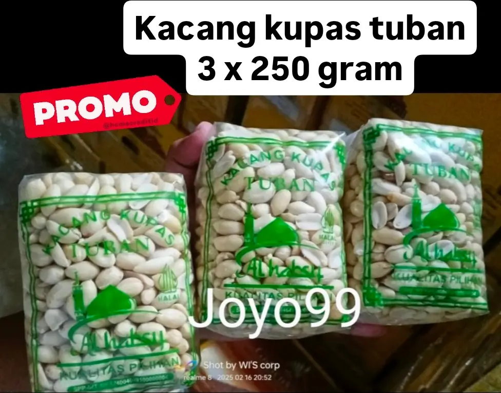 Kacang kupas tuban adalah produk yang dijual dengan berat 3 X 250 gram. Kacang ini memiliki biji kecil dan sedang yang membuatnya lebih mudah dikunyah dan dicerna oleh tubuh. Produk ini dikemas dalam kemasan baru edisi lebaran yang membuatnya lebih menarik dan cocok sebagai hadiah atau oleh-oleh saat lebaran.