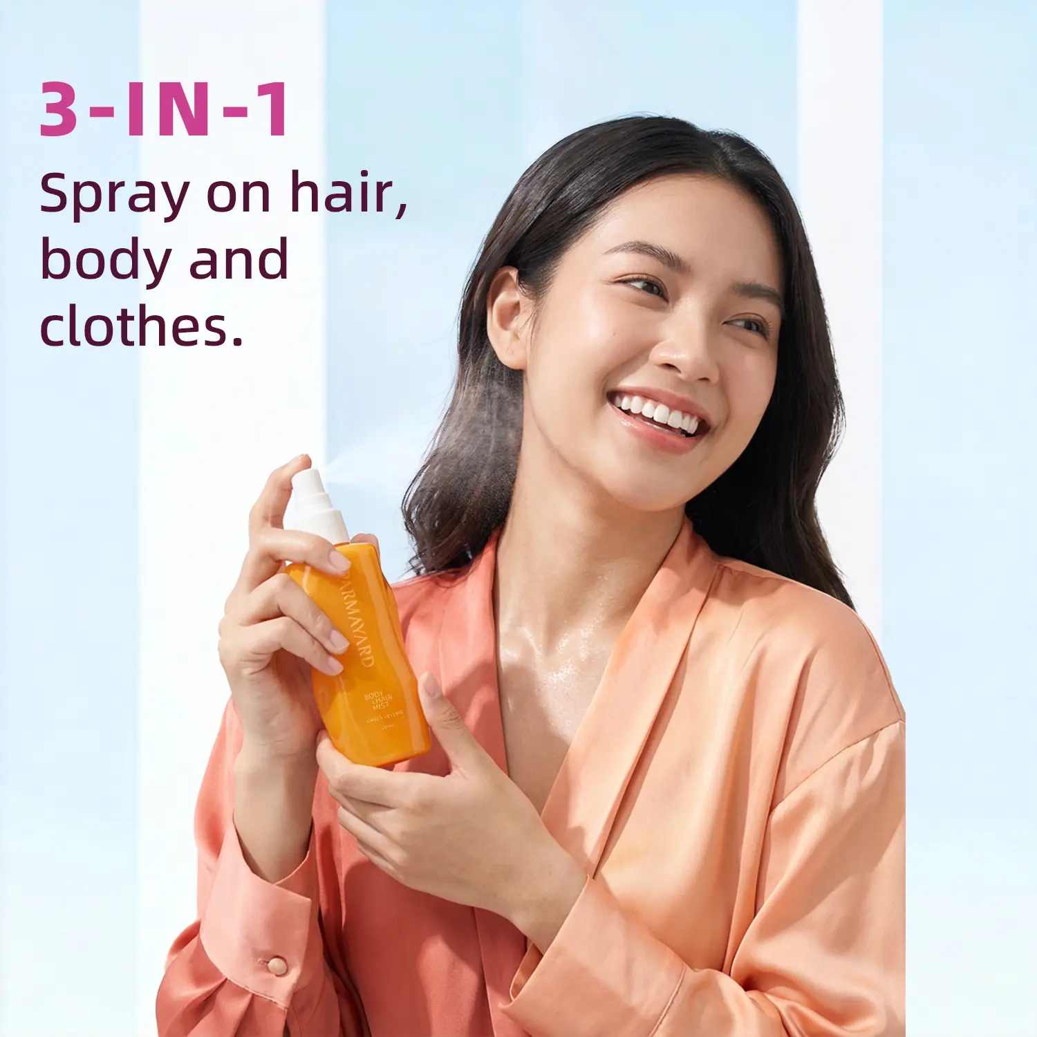 - Semprotkan PARMAYARD Hair & Body Mist setelah mengaplikasikan pelembap atau lotion pada kulit agar lebih menempel.